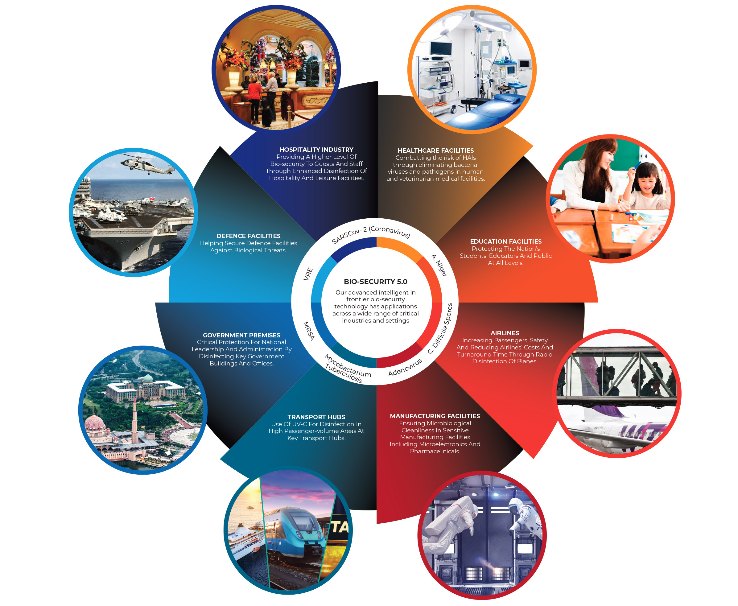 Our solution are well implemented in various areas such as the healthcare facilities, education facilities, airlines, manufacturing facilities, transport hubs, government premises, defence facilities and the hospitality industry.